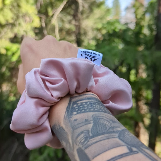 Delicate, dreamy, and effortlessly pretty—Pink Lily in our Maple size is the perfect touch of blush for everyday wear. Handmade from silky satin in a soft blush tone, this medium scrunchie adds just the right amount of sweetness to any hairstyle.