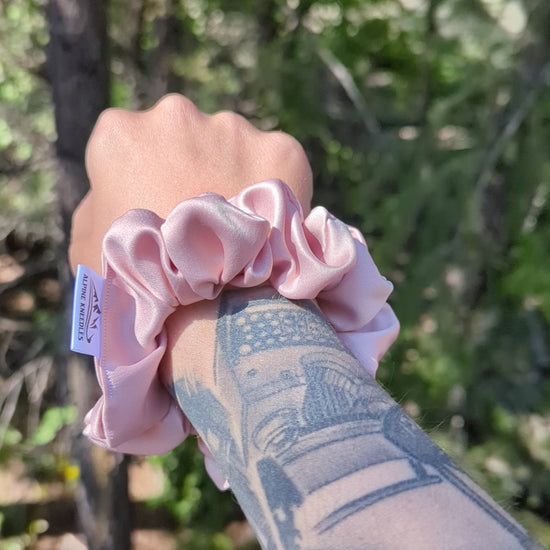 Delicate, dreamy, and effortlessly pretty—Pink Lily in our Sapling size is the perfect touch of blush for everyday wear. Handmade from silky satin in a soft blush tone, this extra-small scrunchie adds just the right amount of sweetness to any hairstyle.