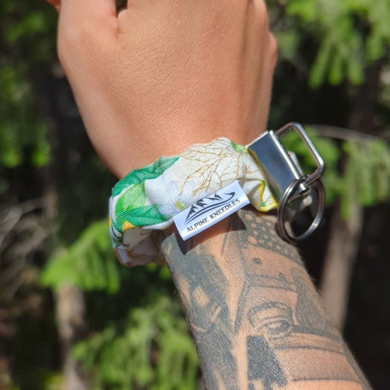 Designed with a soft, scrunchie-inspired body and finished with a sturdy flat keyring, this handmade wristlet slides comfortably over your wrist while keeping keys, pouches, or small essentials within reach. It's the perfect blend of functional and fresh—ideal for sunny days, farmer’s market runs, or just adding a pop of lemon love to your outfit.